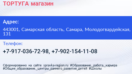 ТОРТУГА, магазин по адресу 443001, Самарская область, Самара, Молодогвардейская, 131 в дальнейшем Организация, размещена в следующих категориях: