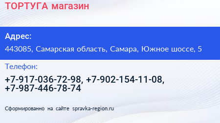ТОРТУГА, магазин по адресу 443085, Самарская область, Самара, Южное шоссе, 5 в дальнейшем Организация, размещена в следующих категориях: