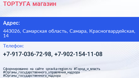 ТОРТУГА, магазин по адресу 443026, Самарская область, Самара, Красногвардейская, 14 в дальнейшем Организация, размещена в следующих категориях: