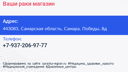 Ваши раки, магазин по адресу 443083, Самарская область, Самара, Победы, 8д в дальнейшем Организация, размещена в следующих категориях: