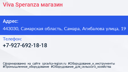 Viva Speranza, магазин по адресу 443030, Самарская область, Самара, Агибалова улица, 19 в дальнейшем Организация, размещена в следующих категориях:
