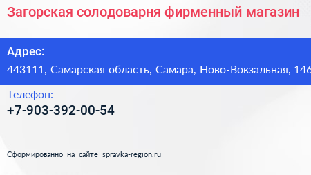 Загорская солодоварня, фирменный магазин по адресу 443111, Самарская область, Самара, Ново-Вокзальная, 146 в дальнейшем Организация, размещена в следующих категориях:
