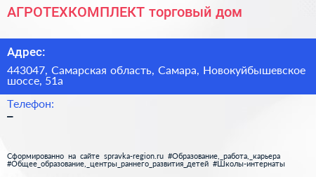 АГРОТЕХКОМПЛЕКТ, торговый дом по адресу 443047, Самарская область, Самара, Новокуйбышевское шоссе, 51а в дальнейшем Организация, размещена в следующих категориях: