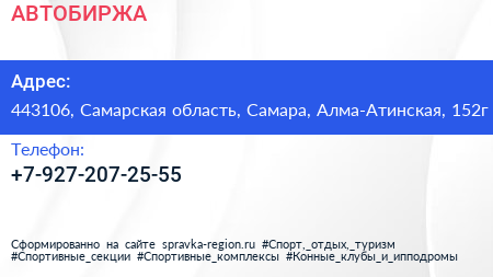 АВТОБИРЖА по адресу 443106, Самарская область, Самара, Алма-Атинская, 152г в дальнейшем Организация, размещена в следующих категориях: