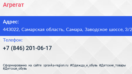 Агрегат по адресу 443022, Самарская область, Самара, Заводское шоссе, 3/2 в дальнейшем Организация, размещена в следующих категориях: