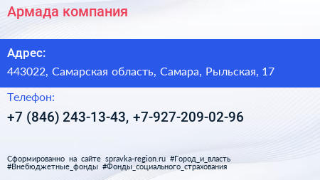 Армада, компания по адресу 443022, Самарская область, Самара, Рыльская, 17 в дальнейшем Организация, размещена в следующих категориях:
