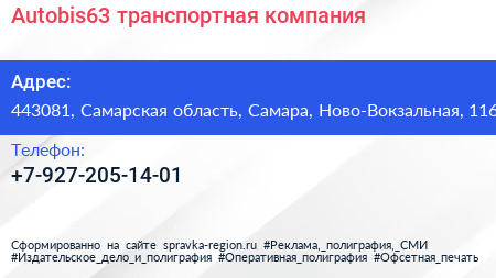 Autobis63, транспортная компания по адресу 443081, Самарская область, Самара, Ново-Вокзальная, 116 в дальнейшем Организация, размещена в следующих категориях: