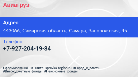 Авиагруз по адресу 443066, Самарская область, Самара, Запорожская, 45 в дальнейшем Организация, размещена в следующих категориях:
