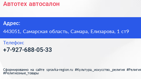 Автотех, автосалон по адресу 443051, Самарская область, Самара, Елизарова, 1 ст9 в дальнейшем Организация, размещена в следующих категориях: