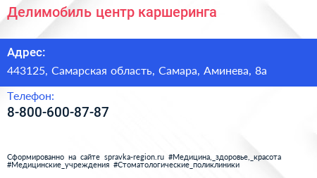 Делимобиль, центр каршеринга по адресу 443125, Самарская область, Самара, Аминева, 8а в дальнейшем Организация, размещена в следующих категориях: