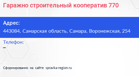 Гаражно-строительный кооператив №770 по адресу 443084, Самарская область, Самара, Воронежская, 254 в дальнейшем Организация, размещена в следующих категориях: