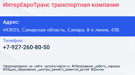 ИнтерЕвроТранс, транспортная компания по адресу 443031, Самарская область, Самара, 8-я линия, 43Б в дальнейшем Организация, размещена в следующих категориях: