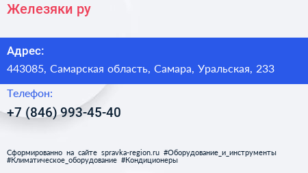 Железяки.ру по адресу 443085, Самарская область, Самара, Уральская, 233 в дальнейшем Организация, размещена в следующих категориях: