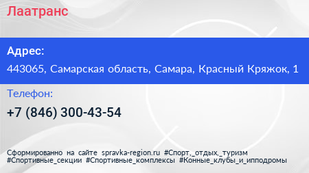 Лаатранс по адресу 443065, Самарская область, Самара, Красный Кряжок, 1 в дальнейшем Организация, размещена в следующих категориях: