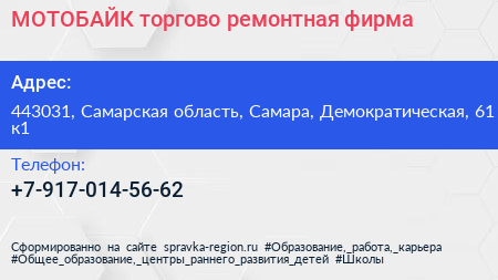 МОТОБАЙК, торгово-ремонтная фирма по адресу 443031, Самарская область, Самара, Демократическая, 61 к1 в дальнейшем Организация, размещена в следующих категориях: