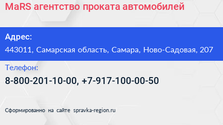 MaRS, агентство проката автомобилей по адресу 443011, Самарская область, Самара, Ново-Садовая, 207 в дальнейшем Организация, размещена в следующих категориях: