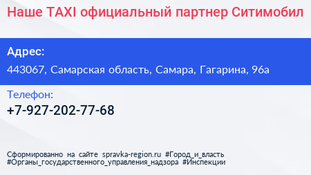 Наше TAXI, официальный партнер Ситимобил по адресу 443067, Самарская область, Самара, Гагарина, 96а в дальнейшем Организация, размещена в следующих категориях: