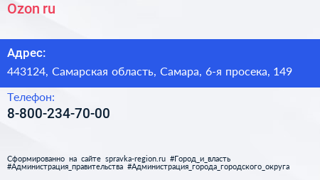 Ozon.ru по адресу 443124, Самарская область, Самара, 6-я просека, 149 в дальнейшем Организация, размещена в следующих категориях:
