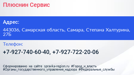 Плюснин-Сервис по адресу 443036, Самарская область, Самара, Степана Халтурина, 27Б в дальнейшем Организация, размещена в следующих категориях: