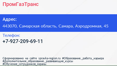 ПромГазТранс по адресу 443070, Самарская область, Самара, Аэродромная, 45 в дальнейшем Организация, размещена в следующих категориях: