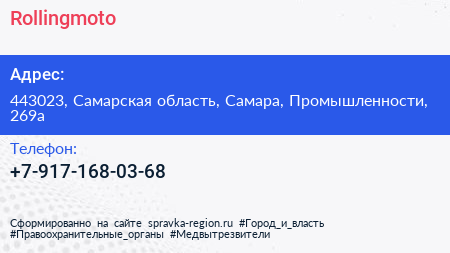 Rollingmoto по адресу 443023, Самарская область, Самара, Промышленности, 269а в дальнейшем Организация, размещена в следующих категориях:
