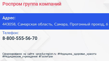 Роспром, группа компаний по адресу 443058, Самарская область, Самара, Прогонный проезд, 6 в дальнейшем Организация, размещена в следующих категориях:
