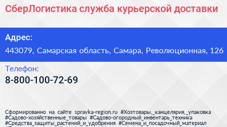 СберЛогистика, служба курьерской доставки по адресу 443079, Самарская область, Самара, Революционная, 126 в дальнейшем Организация, размещена в следующих категориях: