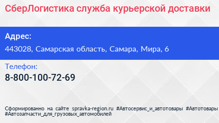 СберЛогистика, служба курьерской доставки по адресу 443028, Самарская область, Самара, Мира, 6 в дальнейшем Организация, размещена в следующих категориях: