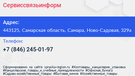 Сервиссвязьинформ по адресу 443125, Самарская область, Самара, Ново-Садовая, 329а в дальнейшем Организация, размещена в следующих категориях: