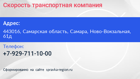 Скорость, транспортная компания по адресу 443016, Самарская область, Самара, Ново-Вокзальная, 61д в дальнейшем Организация, размещена в следующих категориях:
