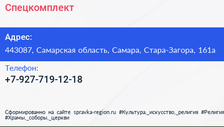 Спецкомплект по адресу 443087, Самарская область, Самара, Стара-Загора, 161а в дальнейшем Организация, размещена в следующих категориях:
