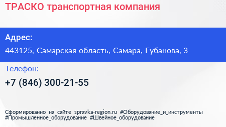 ТРАСКО, транспортная компания по адресу 443125, Самарская область, Самара, Губанова, 3 в дальнейшем Организация, размещена в следующих категориях: