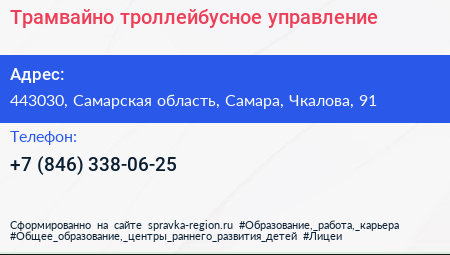Трамвайно-троллейбусное управление по адресу 443030, Самарская область, Самара, Чкалова, 91 в дальнейшем Организация, размещена в следующих категориях: