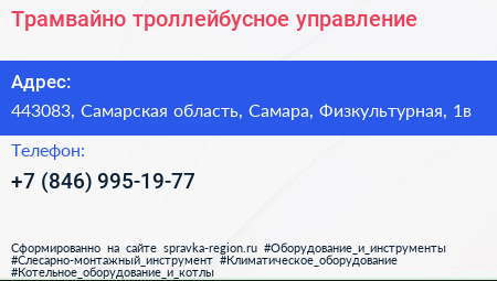 Трамвайно-троллейбусное управление по адресу 443083, Самарская область, Самара, Физкультурная, 1в в дальнейшем Организация, размещена в следующих категориях: