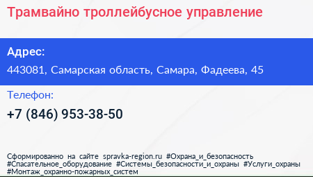 Трамвайно-троллейбусное управление по адресу 443081, Самарская область, Самара, Фадеева, 45 в дальнейшем Организация, размещена в следующих категориях: