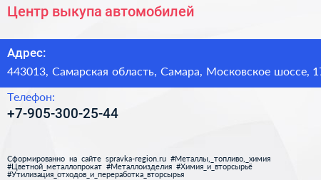 Центр выкупа автомобилей по адресу 443013, Самарская область, Самара, Московское шоссе, 17 в дальнейшем Организация, размещена в следующих категориях: