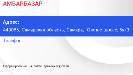 АМБАРБАЗАР по адресу 443085, Самарская область, Самара, Южное шоссе, 5а/3 в дальнейшем Организация, размещена в следующих категориях: