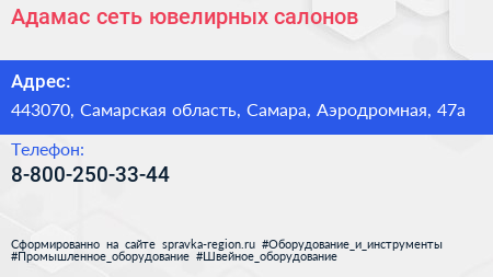 Адамас, сеть ювелирных салонов по адресу 443070, Самарская область, Самара, Аэродромная, 47а в дальнейшем Организация, размещена в следующих категориях: