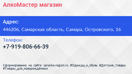 АлкоМастер, магазин по адресу 446206, Самарская область, Самара, Островского, 16 в дальнейшем Организация, размещена в следующих категориях: