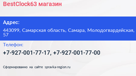 BestClock63, магазин по адресу 443099, Самарская область, Самара, Молодогвардейская, 57 в дальнейшем Организация, размещена в следующих категориях: