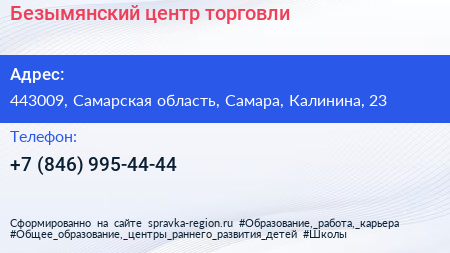 Безымянский, центр торговли по адресу 443009, Самарская область, Самара, Калинина, 23 в дальнейшем Организация, размещена в следующих категориях: