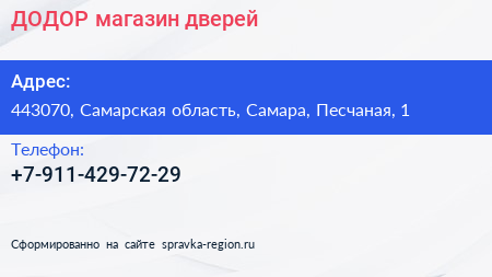 ДОДОР, магазин дверей по адресу 443070, Самарская область, Самара, Песчаная, 1 в дальнейшем Организация, размещена в следующих категориях: