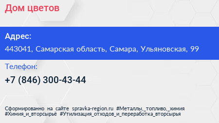 Дом цветов по адресу 443041, Самарская область, Самара, Ульяновская, 99 в дальнейшем Организация, размещена в следующих категориях: