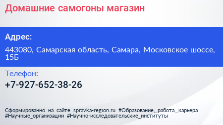 Домашние самогоны, магазин по адресу 443080, Самарская область, Самара, Московское шоссе, 15Б в дальнейшем Организация, размещена в следующих категориях: