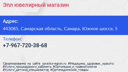 Эпл, ювелирный магазин по адресу 443085, Самарская область, Самара, Южное шоссе, 5 в дальнейшем Организация, размещена в следующих категориях: