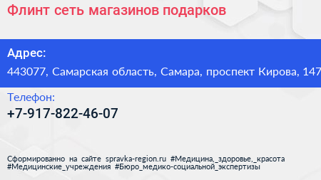 Флинт, сеть магазинов подарков по адресу 443077, Самарская область, Самара, проспект Кирова, 147 в дальнейшем Организация, размещена в следующих категориях: