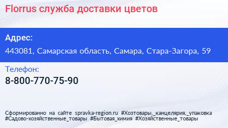 Florrus, служба доставки цветов по адресу 443081, Самарская область, Самара, Стара-Загора, 59 в дальнейшем Организация, размещена в следующих категориях: