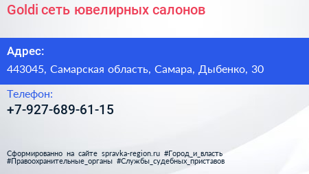 Goldi, сеть ювелирных салонов по адресу 443045, Самарская область, Самара, Дыбенко, 30 в дальнейшем Организация, размещена в следующих категориях: