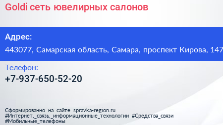 Goldi, сеть ювелирных салонов по адресу 443077, Самарская область, Самара, проспект Кирова, 147 в дальнейшем Организация, размещена в следующих категориях: