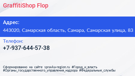 GraffitiShop Flop по адресу 443020, Самарская область, Самара, Самарская улица, 83 в дальнейшем Организация, размещена в следующих категориях: